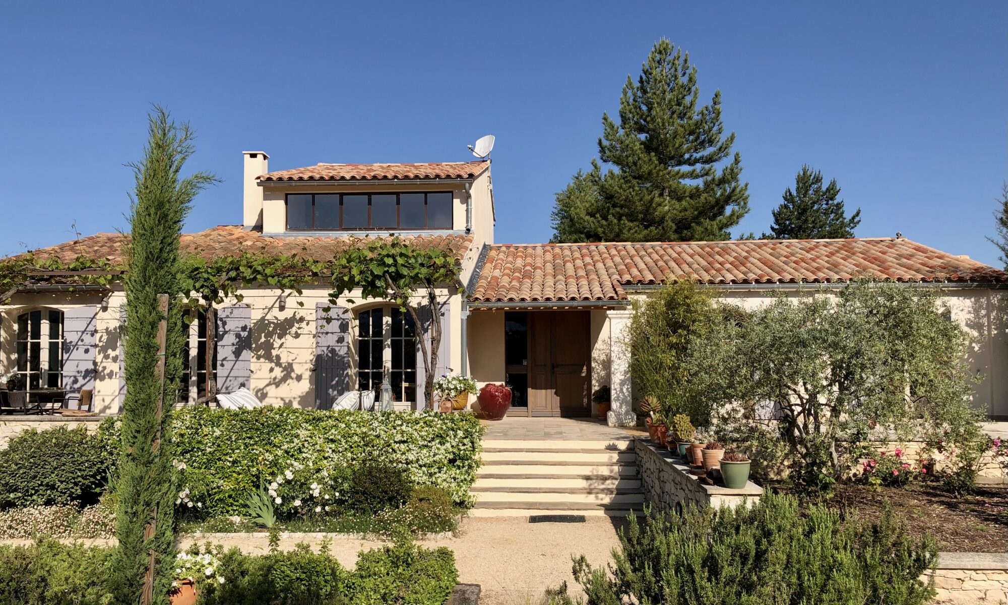 Der Garten ist Teil dieser Struktur. Skulpturen stehen zwischen Lavendel, Macchia und den Kräutern der Provence, unaufdringlich, selbstverständlich. Auch im Inneren setzt sich diese Haltung fort: Kunst, Bilder, Bücher – Spuren eines weltoffenen Lebens, das nicht erklärt werden muss. Zwischen den Häusern liegt ein großzügiges Schwimmbad.